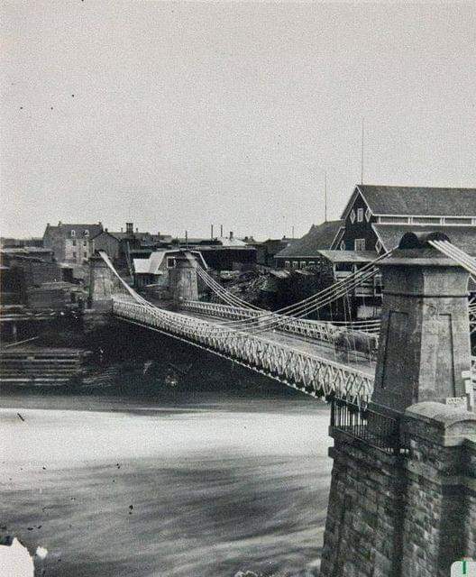 ![The suspension bridge at Chaudiere, which was once the only bridge connecting Ottawa and Hull in 1892. The view is from the Hull side looking south with a sawmill on the right. The bridge was replaced in 1892. [Source: Lost Ottawa]](photos/Chaudiere%20Island%201892.jpg)